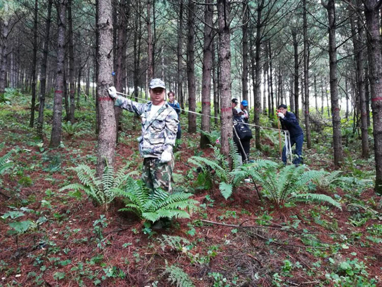 为充分发挥森林的生态效益、社会效益和经济效益,工作人员根据人工红松幼龄纯林的特点和立地条件,针对林分不同龄组、坡向、坡位,科学布设监测样地,逐步设立模式林。人工红松纯林结构化探索经营共设计三个不同采伐强度,通过对林分采取透光抚育,调整林分密度,优化林内空间结构,改善土壤环境,增强通风、光照,促进林木生长和天然下种,从而增加树种结构上的多样化和促进天然更新,使之成为近自然状态的红松阔叶混交林,达到提高人工红松林生长量和结实量的目的。同时,通过布设对照样地与监测样地,探索和研究可对比、可复制、可推广的人工林经营模式及技术标准,为森林可持续经营探索科学的模式和有效途径。 监测样地共设三个小班,6块样地,采用正方形,1/2对角线为17.32米,面积为0.06公顷,工作人员用罗盘仪确定样地的东、南、西、北四个顶点和中心的位置,并埋设样地标桩;样地内的树木根据每木检尺的规定,用围尺测量胸径,精确到0.1CM,检过尺的树木在胸径处用红油漆描上圆环,挂上号牌,对树木方位、冠幅投影面积、树高、郁闭度等全部文字数据记录在《每木检尺及测高记录》表上,为临江林业局不断优化经营措施、提高经营水平提供决策依据。 |