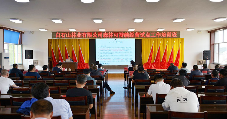 为确保森林可持续经营试点工作高质量推进。5月31日,白石山林业公司举办森林可持续经营试点工作培训班。各相关单位负责人、资源管理员、营林技术员共计50余人参加培训。