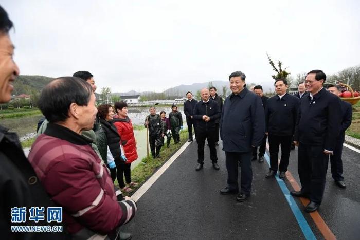 2020年3月30日,习近平总书记在浙江省安吉县天荒坪镇余村考察,同村民们亲切交谈,了解该村多年来践行“绿水青山就是金山银山”理念、推动绿色发展发生的巨大变化。新华社记者 申宏摄 在4月的陕西考察期间,习近平总书记说,保护好秦岭生态环境,对确保中华民族长盛不衰、实现“两个一百年”奋斗目标、实现可持续发展具有十分重大而深远的意义。他还特别强调,各级党委和领导干部要自觉讲政治,对国之大者一定要心中有数。