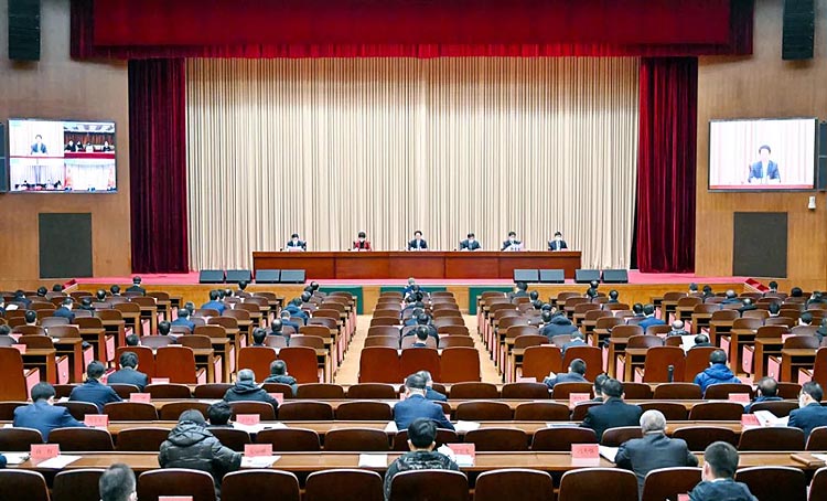 会议以视频形式召开。省委常委、常务副省长蔡东主持会议。省委常委同志在主席台就座。省级领导同志,省政府、省政协秘书长,省纪委常委、省监委委员,中省直各部门单位和部分重点企业、大专院校、金融机构,以及各市(州)、长白山保护开发区、各县(市、区)负责同志等在各会场参会。
